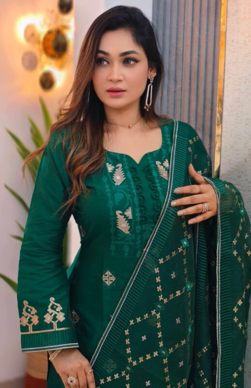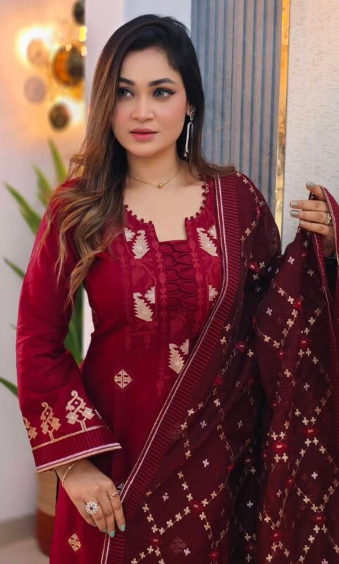 চান্দেরি সিল্ক শাড়ি উন্নত মানের চান্দেরি সিল্ক কাপড়ে তৈরি, হালকা ও আরামদায়ক পুরো শাড়ি জুড়ে নান্দনিক প্রিন্ট ও শৈল্পিক নকশার সমন্বয় পাড় ও আঁচলে সূক্ষ্ম ডিজাইনের কাজ, যা শাড়িটিকে আরও আকর্ষণীয় করে তোলে রুচিশীল ফিনিশিং ও পরিপাটি ড্রেপ, পরলে দেয় এলিগ্যান্ট লুক যেকোনো উৎসব, পার্টি কিংবা বিশেষ অনুষ্ঠানের জন্য উপযোগী l শাড়ির সাথে সম্পূর্ণ ম্যাচিং ব্লাউজ পিস সংযুক্ত থাকবে এই শাড়িটি পরলে সহজেই পাওয়া যাবে আভিজাত্য ও সৌন্দর্যের নিখুঁত মেলবন্ধন।
